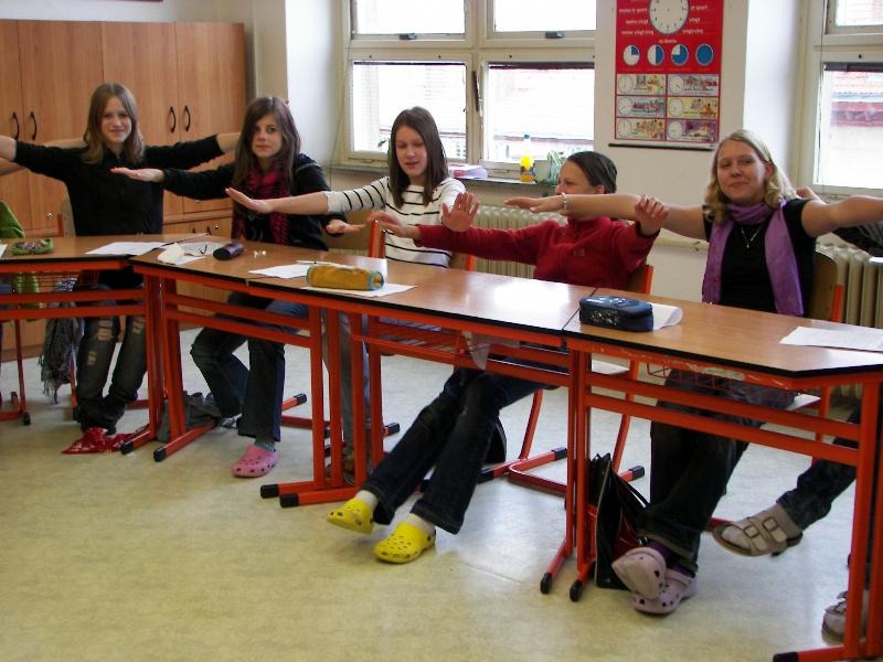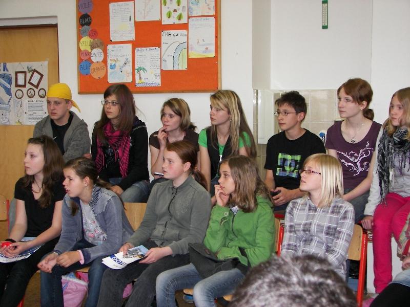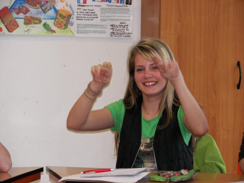 Dále jsme absolvovali krátký, leč velmi poučný exkurz do světa hluchoněmých lidí a za pomoci paní uč. Záhoříkové jsme se dozvěděli o některých zásadách, kdy a jak používat znakovou řeč a také jsme se některé konkrétní znaky naučili. Např. jak ve znakovce vyjádřit – ahoj, chci, nechci, děti, dům, dívka, mít rád, letadlo, čůrat atd. Tato část děti velmi bavila.