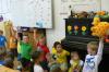 Úterý bylo žluté a ve znamení hraček. Nejen žluté oblečení, ale také záplava žlutých plyšáků slibovala spoustu her a legrace. Sliby se naplnily, domů se nikomu nechtělo, ale museli jsme se připravit na zelenou středu, barevnou přírodu a roční období.