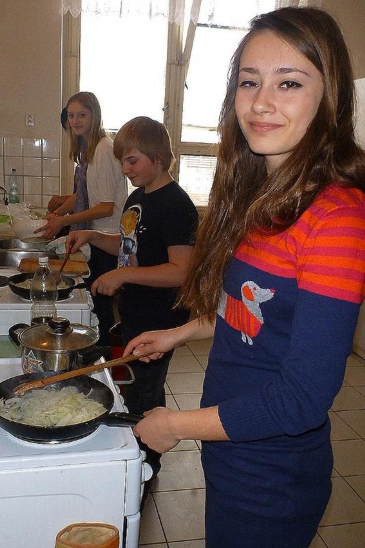 Oba pokrmy se nám náramně povedly. Děti byly ukázněné, soustředěné a jak vidno z fotografií, práce v kuchyni jim vůbec nevadila, naopak. Bavila je a dělala jim radost. A o tom by výuka přece měla být.