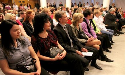Jela jsem s maminkou, sestrou, babičkou a bratrancem. Oblékla jsem si na tu slávu černé šaty, bolerko a také dosti nepohodlné lodičky. U vstupu jsme zakoupili sbírku oceněných prací – tam jsem našla, že moje práce získala ČESTNÉ UZNÁNÍ. Rodiče to již věděli ze školy, ale já se domnívala, že se jedeme jen podívat a zatleskat ostatním. Moje práce byla oceněna, což pro mě moc znamená. Také o nás mluvili jako o mladých spisovatelích a to jednoho potěší. :)
