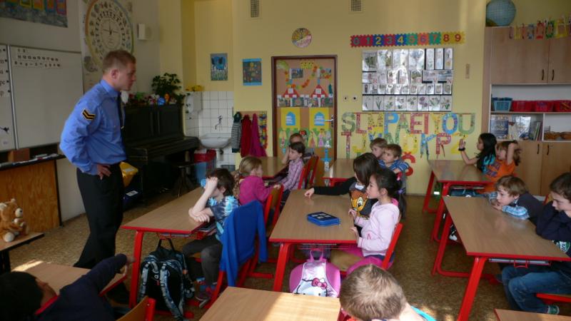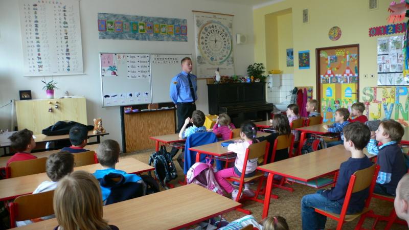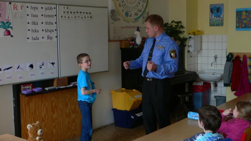 Už samotná přítomnost policisty ve třídě byla pro děti vítanou změnou a silným zážitkem. Po obecném úvodu došlo na konkrétní otázky a situace. Poznáš špatného člověka? Lze poznat, kdo má dobré úmysly a kdo má za lubem něco nekalého? Umíš říci ne? Nenecháš se přesvědčit? Na vše děti dostaly odpovědi a některé ze zmiňovaných otázek si mohly vyzkoušet i samy na sobě v bezpečí naší třídy. A to skutečně zapůsobí. Dneska už můžeme s klidem říci, že prvňáci na naší škole "ví".