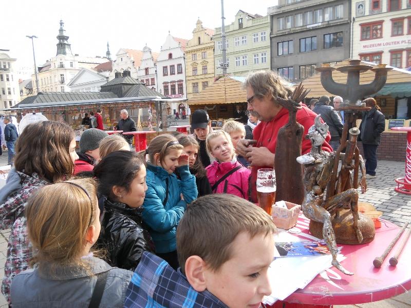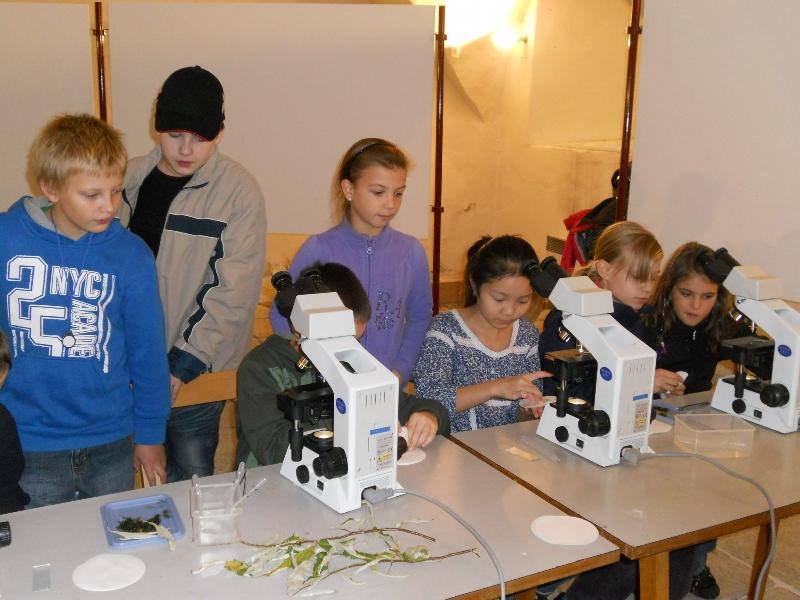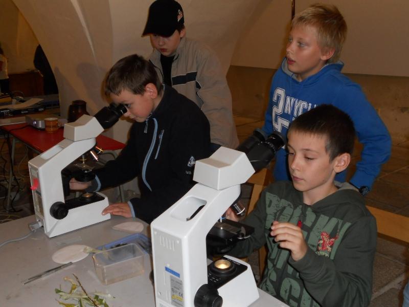 Potom jsme se stali malými vědci. Za pomoci pracovníků a studentů Západočeské univerzity jsme si připravili vlastní preparáty a ty jsme pozorovali pod mikroskopem. Nejzdařilejší preparáty jsme dostali i na fotografii. Po výstavě jsme se šli podívat na trh, kde jsme si vyslechli napínavou pověst a viděli jsme, jak se pracuje na tkalcovském stavu.