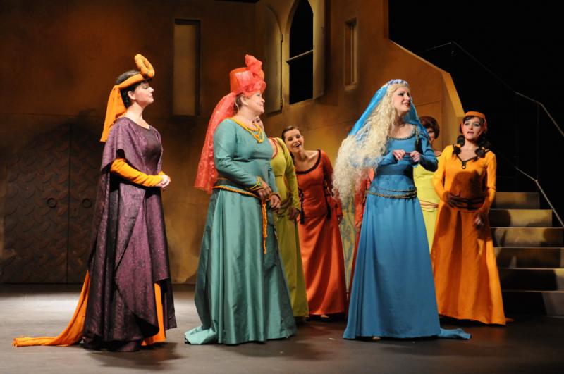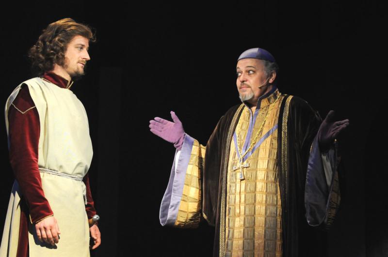 Stejnojmenný divadelní muzikál si v ničem pranic nezadá se známým filmem. Ba naopak. Na první pohled jednotvárná scéna se záhy projeví jako velmi variabilní díky množství oken, střílen a dveří, herecké, taneční i pěvecké výkony jsou výborné, děj má spád, hluchá místa zde prakticky neexistují. Pozornost na sebe strhává dvojice stárnoucích záletníků: Petr, král kyperský, v podání Jozefa Hruškociho a Štěpán, vévoda bavorský, jehož mistrně hraje Bronislav Kotiš.