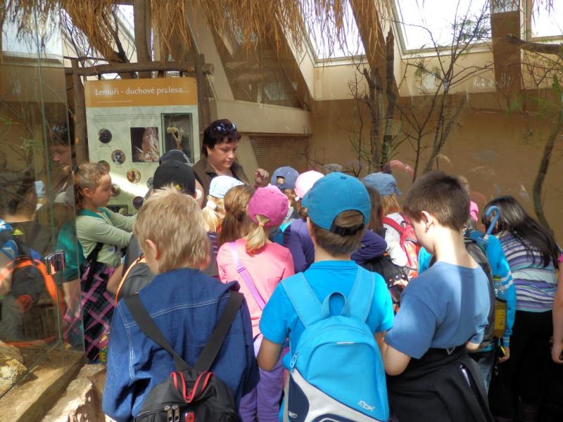 V zoologické zahradě nás uvítala milá paní průvodkyně a naše cesta za drakem mohla začít. Nejprve jsme se zastavili u dovádivých lemurů, poté jsme se podívali do pavilonu Madagaskar. Paní průvodkyně povídala zajímavě o tamější fauně a flóře. Vzpomenula i známý animovaný film, takže jsme poznali živého krále Jelimána a jeho rádce Morrise, dokonce i obávané fosy. Odvážně jsme pak vkročili do afrického noktuária, kde jsme nahlédli do tajemného světa noční Afriky.