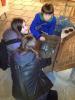 A pak už hurá tvořit, vyrábět a také... Pod vedením zkušených lektorů či zcela samostatně jsme si mohli ozdobit vajíčka klasickou technikou tekutého vosku, vyzkoušet, jak se „otlouká“ píšťalka (některé i pískaly) či uplést pomlázku (to jsme zvládali bravurně, protože to umíme už z loňska), ale hlavně si téměř všichni pochovali malé králíčky. Někdo z dětí rychle objevil velkou proutěnou bednu se 4 králičími ratolestmi s oušky dolů – tedy s beránky. Technika netechnika, pochovat si živé obyčejné venkovské zvířátko, navíc přítulné a hebounké, bylo pro děti evidentně největším zážitkem. Sama jsem vyrostla napůl na venkově a nebylo zvířete, na které bych si někdy alespoň nesáhla. Ale v dnešní době moderních městských babiček je taková „zábava“ dětem téměř zapovězena. Dokonce ani ti nejotrlejší PC „pařmeni“ nebyli k odtržení. Ale museli jsme se vystřídat s další skupinou.