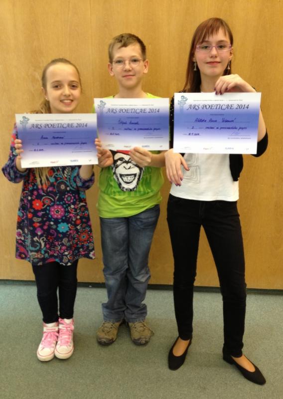 Ne, nebojte se, nejde o žádné dětské rozpočítadlo, ale o počet umístění, kterých žáci naší školy dosáhli během prvního dne 15. ročníku soutěže Ars poeticae.