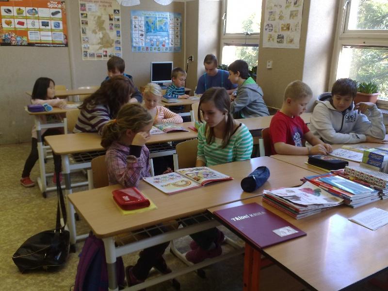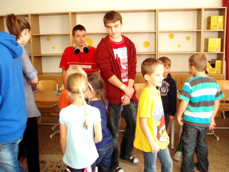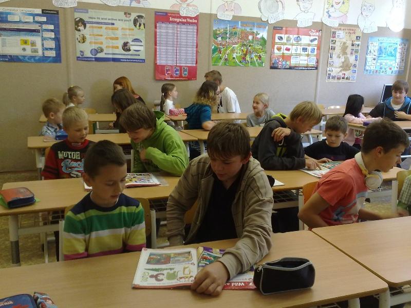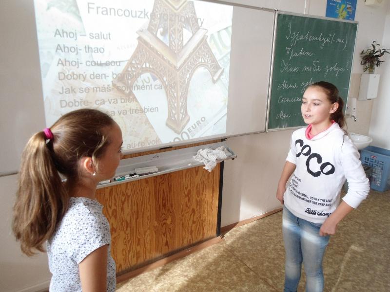 Žáci z dalších tříd si připravili jazykové aktivity pro nejmenší. Využili toho, co již prvňáci a druháci znají z angličtiny, vedli s nimi jednoduché rozhovory, malí studenti pod jejich vedením vypracovávali nejrůznější úkoly, vybarvovali podle pokynů, hráli pexeso, zpívali a soutěžili. Někteří se seznámili i s německým, francouzským a ruským jazykem. V tomto duchu proběhly úspěšně hodiny ve třídách 1.B a 8.B, 1.D a 7.B, 2.B a 9.A, 1.A a 8.B, 1.C a 7.A, 2.C a 8.A, 2.A a 9.A. Žáci třídy 3.A spolupracovali na projektech za účelem seznámení se s mezinárodními slovy.
