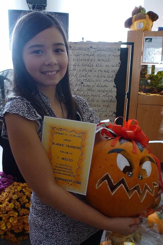 Nejvíce se dětem líbila dýně č. 33. Hlasovalo pro ni 57 žáků a šťastnou vítězkou celé soutěže se stala Blanka Tranová ze třídy 5.A.