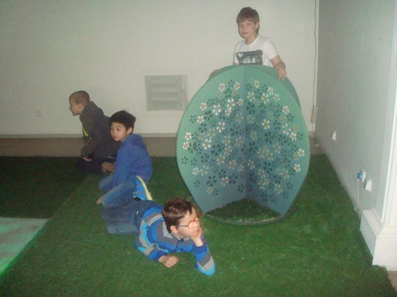 A to ještě nebyl konec. Čekala nás dílna. Složili jsme si papírové čepice a postavili svojí kouzelnou zahradu. Nakonec jsme vyluštili křížovku, zavolali na zahradu a ta nám vyčarovala noční psí setkání. Byla to krása.