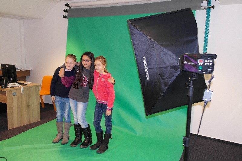 Vyfotili jsme se před zeleným pozadím a vybrali jsme si, do jaké země bychom se chtěli podívat. Simsalabim, pár kliknutí myší a byli jsme tam. Domů si tak děti odnesly fotografie, na kterých stojí u Kolosea v Římě, u sochy Svobody v New Yorku nebo na pláži u moře.