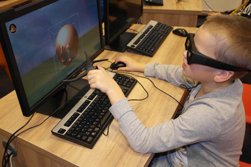 Nasadili jsme si 3D brýle a speciálním perem jsme pak modelovali obrázek v počítači. Vznikaly prapodivné objekty nejrůznějších tvarů a barev - jako ze světa fantasy.