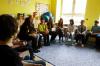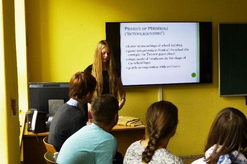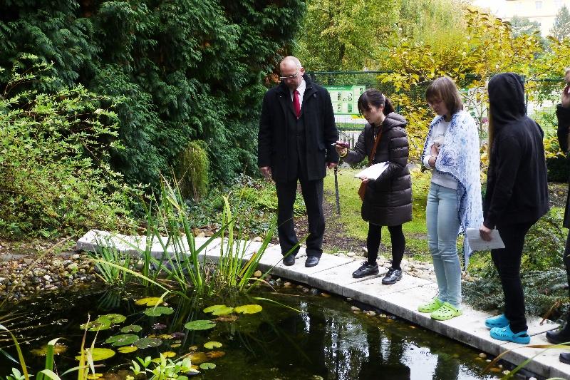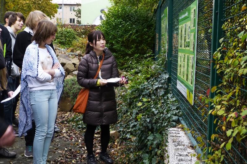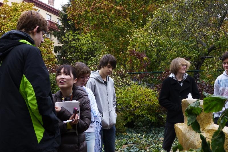 Po krátkém uvítání s panem ředitelem čekala na paní Sayaku prezentace naší školy, připravená vybranými žáky z devátých tříd. Tito žáci představovali naší školu samozřejmě v angličtině a vše zvládli s přehledem. Následovala krátká diskuze, poté komentovaná prohlídka naší zahrady a nakonec návštěva v hodině přírodopisu u 9.B. Nejdéle jsme se zdrželi v naší školní zahradě, ze které byla návštěva nadšená. Obdivovala hlavně venkovní třídu, „hřbitov odpadků“ a relaxační část s ohništěm nebo bylinkovou zahrádku.