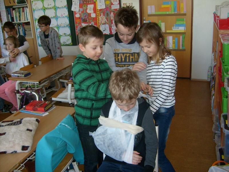 Také jsme si vyzkoušeli co dělat, kdyby se někomu v našem okolí stal nějaký úraz. Víme, jak se zachovat, když někdo krvácí, když se dusí nebo se mu udělá špatně. Záchranná služba by z nás určitě měla radost!