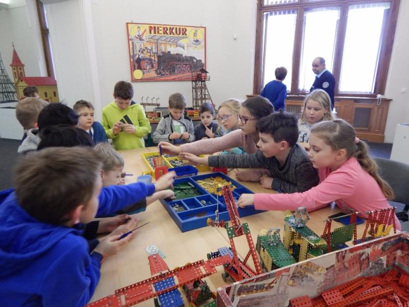 Celé druhé patro ŠD v Ruské ulici a některá oddělení ze ŠD Slovanská se postupně vypravila do Západočeského muzea v Plzni na zajímavou výstavu exponátů sestavených ze stavebnice Merkur.