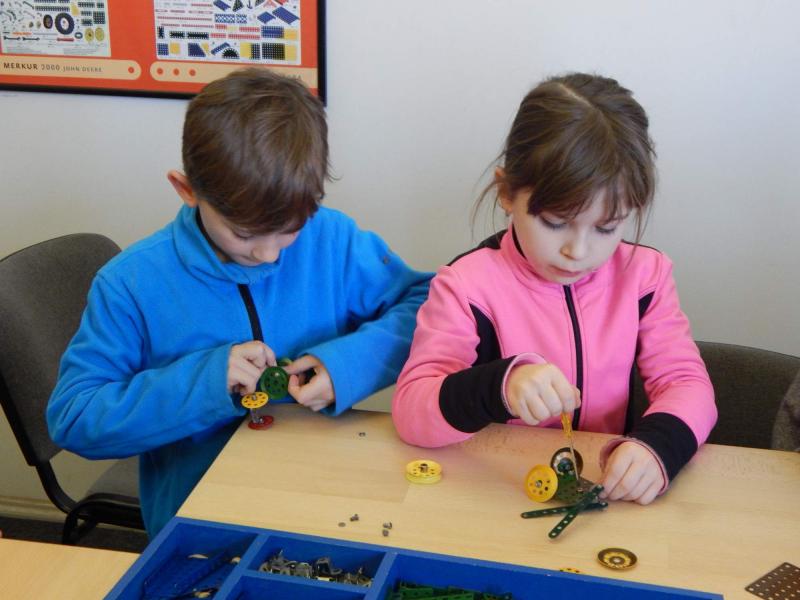 Nejprve jsme obdivovali šikovné a trpělivé ruce modelářů, které dokázaly vytvořit zmenšeniny letadel, strojů, vlaků, ruského kola, kostela a dalších úžasných výtvorů člověka. V druhé části výstavního prostoru si děti mohly vyzkoušet samy se stavebnicí pracovat a něco zkonstruovat. Za použití šroubováků a klíčů byly děti schopny sestrojit zajímavé předměty. Jak se nám to podařilo, posuďte sami na přiložených fotkách.