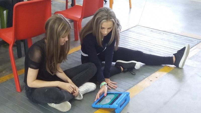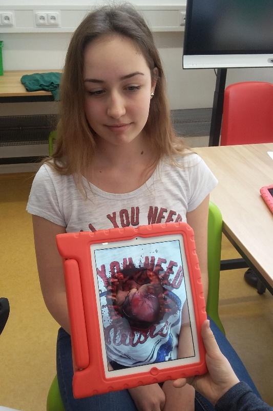 Děvčata z druhé skupinky zatím přecházela s tablety v rukách po místnosti, a pokud správně zaměřila tablet na určený bod (ať už jím byl informační letáček o nějakém zvířeti, nebo obrázek srdce přilepený na spolužaččině hrudi), tablet jim v rukách jakoby ožil – letáček se změnil ve zvíře samotné a na kamarádčině hrudi se objevilo její vlastní tlukoucí srdce. I v této skupině si děvčata vyzkoušela vytvářet svojí vlastní rozšířenou realitu, například výrobou „taháku“ na anglická slovíčka, nebo převodem vlastnoručně malovaných portrétů do fotografií v tomto případě nikdo nezůstal neodhalen). Favoritem této aktivity ovšem zůstávají letící helikoptéra, robot stoupající po točitém schodišti a pěstní souboj s virtuální postavou.