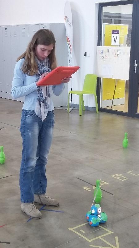 Zatímco první polovina si po „zahřívacím testíku“ z matematiky vyzkoušela programování robotů Wonder Dash, druhá polovina se nestačila divit, co všechno nabízí práce s rozšířenou realitou. A tak se po hale v areálu bývalého depa PMDP projížděli a proháněli malí roboti; prozpěvovali si a pohvizdovali a plnili další úkoly podle toho, jak je děvčata naprogramovala. Ta je dokázala přinutit projet vyznačenou slalomovou dráhu, objet přesně vyměřený obdélník nebo přiblížit se na zavolání. A věřte, že nikdo roboty nešetřil.