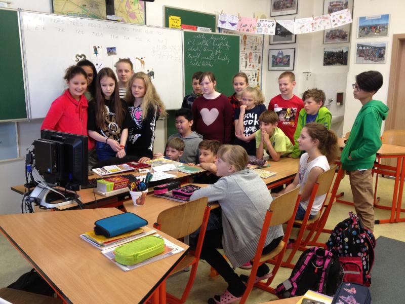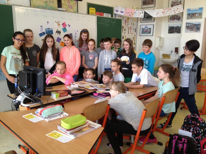 V uplynulých květnových dnech pozvaly obě francouzštinářské skupiny ze třídy 6.A spolu s pí. uč. J. Královou a L. Sikytovou své mladší spolužáky ze všech 3 pátých tříd na ukázkové hodiny FJ.