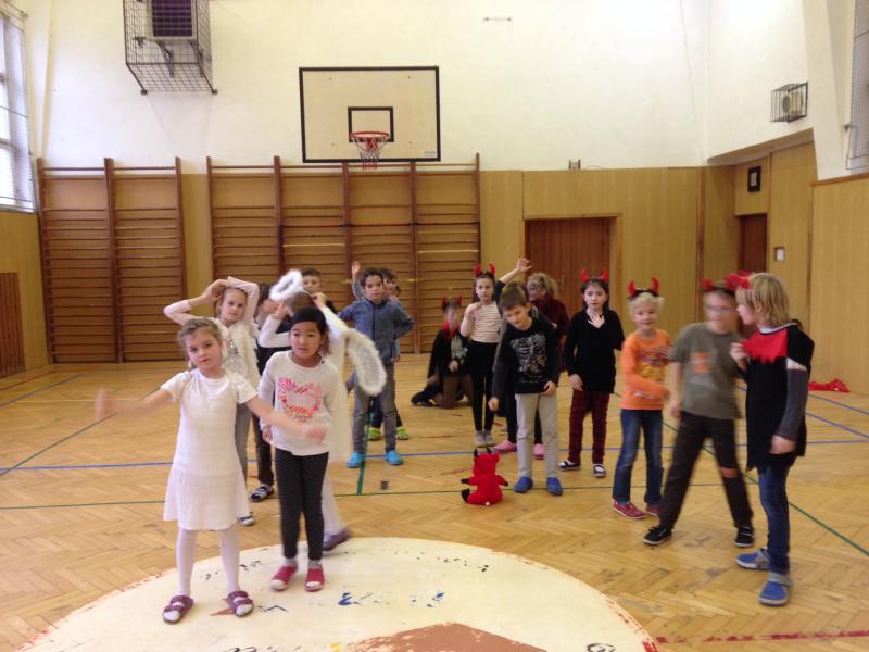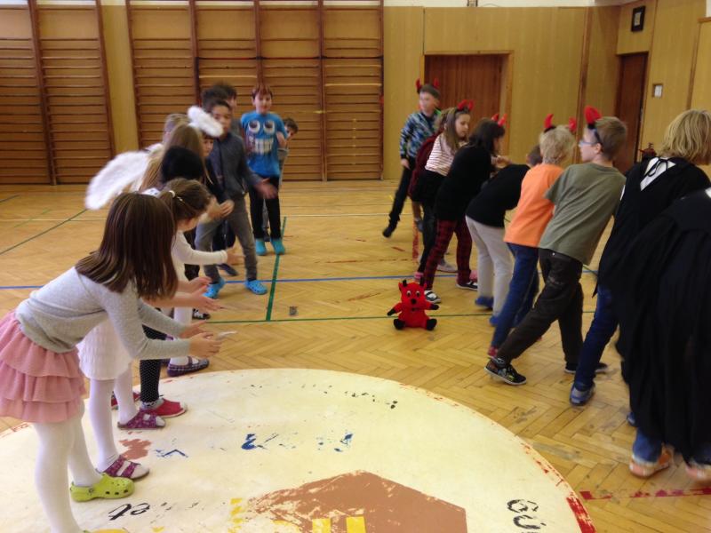 V tělocvičně jsme si nakonec opravdu zařádili a užili spoustu legrace, zábavy i čertovských soutěží.