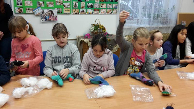 Při práci se děti velmi soustředily a radost byla veliká na obou stranách. Na zpáteční cestě jsme si prohlédli Betlém na slovanské radnici, zkontrolovali, jestli je stromeček před radnicí připravený ke slavnostnímu rozsvícení, našli na velké mapě místo, kde právě jsme a kudy se budeme vracet zpět do školy. Zčervenaly nám cestou tváře, ale vůbec to nevadilo.