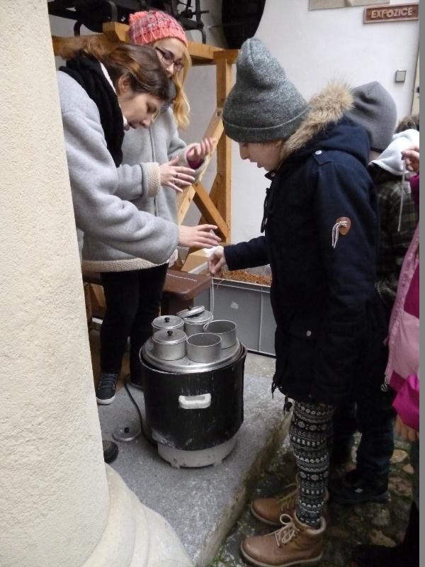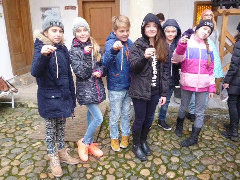Oproti předchozím rokům muzeum tentokrát rozšířilo program na celou 1,5 hodinu a dalo k dispozici i další výstavní prostory vhodné pro pořádání takovýchto akcí pro školy. Hned po příchodu nás čekal krátký úvod na téma, co je to vůbec advent, jaké znají děti vánoční tradice či co doma dodržují v tomto období za zvyky (pouštění ořechových lodiček, krájení jablka na hvězdičku, lití olova či vosku, zdobení stromečku, šupinka pro štěstí pod talíř atd.). Následně jsme sami přihlíželi lití olova do vody. Diskuse nad vzniklými tvary byla docela legrační, někdo viděl v malých kouscích olova jezdce či rytíře koni, jiný větvičku ze stromu. Pravdou je, že vzniklé tvary byly hodně abstraktní a veskrze pichlavé.
