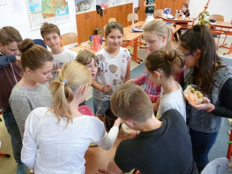 Umíte si představit Vánoce bez sladkostí, cukroví a čokolády? Těžko. A co by to bylo za svátky, kdybychom si v rámci posledních hodin francouzštiny nedopřáli naši specialitu – čokoládové fondue. Nepamatuji si již, kdy jsme tento zvyk zavedli, ale zcela jistě vím, že se ještě nenašla jediná skupina, která by si tuto francouzsko-švýcarskou delikatesu nechala ujít.
