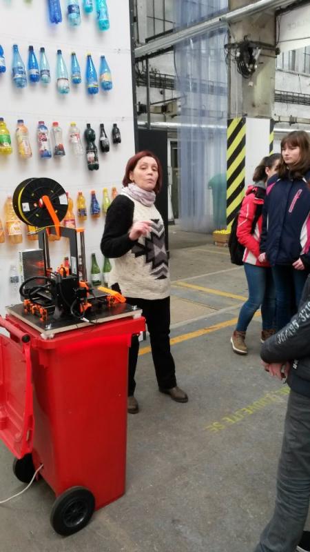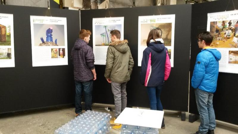 Téma výstavy nás zaujalo především ve spojení s předměty výtvarná výchova a pracovní činnosti, protože k vidění byly opravdu jedinečné “kousky“ z plastu od významných českých i světových umělců a designérů. Co jsme tedy obdivovali? Například “Sea chair“ – plastové stoličky, které nadšení umělci vyrábí přímo na moři z plastového odpadu vytaženého v rybářských sítí. Věděli jsme, že v mořích se nachází velké množství plastového odpadu, který představuje nemalý ekologický problém pro lidstvo, ale že někteří nadšenci dokáží “lovem plastu“ vyčistit moře a ještě z něho něco užitečného vyrobit, to si zaslouží uznání. Z vystavených exponátů nás dále zajímaly boty z plastu, dokonce i sportovní tenisky, lustry, různé dekorativní předměty na zeď či šperky, hračky, které si lidé na Kubě sami podomácku vyrábí, protože v této zemi je hraček pro děti nedostatek. Poté jsme se seznámili se stroji na recyklaci plastů. Osahali jsme si plastovou drť, ze které se vyrábí střiž nebo plastová vlákna do 3D tiskáren. Jednu takovou zajímavou 3D tiskárnu nám na výstavě předvedli. Jednalo se o 3D tiskárnu přestavěnou na hudební nástroj, který hraje českou hymnu a ještě další čtyři písničky. V závěru prohlídky výstavy jsme si nemohli nevšimnout velkého plastového interaktivního hřiště pro děti, které bylo postaveno z plastových kontejnerů a barevných popelnic. Někteří chlapci si chtěli na hřišti pohrát, ale nosnost hracích prvků je pouze do 30 kg. Takže jsme si ještě prohlédli poslední vystavené exponáty - různými technikami upravené popelnice, poděkovali paní průvodkyni za mnoho zajímavých informací a odcházeli s myšlenkou: „Aby se z Mé vlasti nestala Má plast, je potřeba k tomu dělat víc, než jen třídit odpad do kontejnerů správné barvy. Hlavním smyslem interaktivní expozice je přitáhnout pozornost k tématu lokální recyklace a omezení spotřeby plastu.“