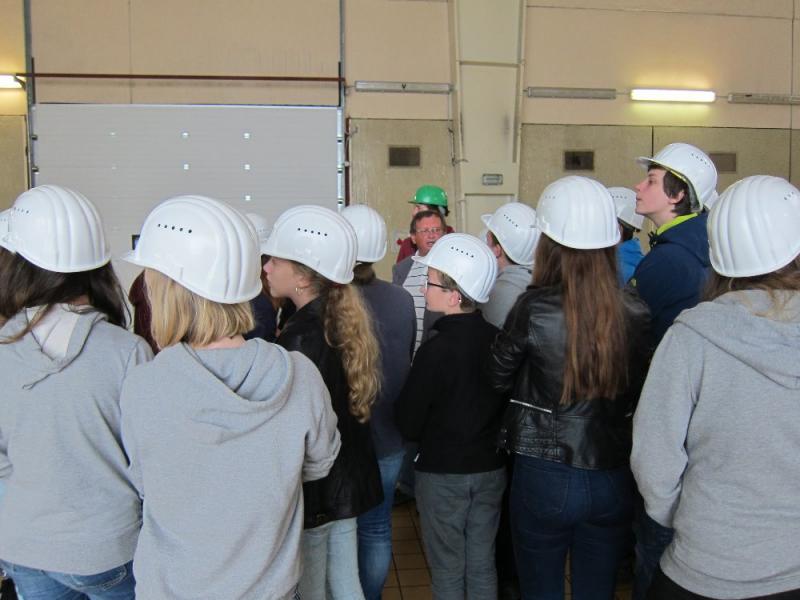 Autobus nás odvezl pod hráz Orlíku, kde nás ve vodní elektrárně přivítal pan průvodce a řekl pár úvodních slov k Orlíku a k vodním elektrárnám obecně. Museli jsem si nasadit přilby a byli jsme poučeni o tom, abychom při procházení provozem dávali pozor a nikde se neuhodili do hlavy nebo neuklouzli.