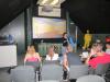 V bývalém zámečku, kde se nyní nachází informační centrum JE Temelín nás vřele přivítali a uvedli do kinosálu. Spokojeně jsme se usadili (někteří vzápětí usnuli) a byli jsme připraveni přijímat informace o JE. Paní průvodkyně dávala dětem během svého pěkného a srozumitelného výkladu kontrolní otázky, aby se přesvědčila, že ji poslouchají. Přednáška probíhala formou různých prezentací, animací a názorných pomůcek tak, aby děti většině informací porozuměly a věci snadno pochopily. Asi nejoblíbenější částí 60 minutové přednášky byl krátký animovaný film o panu Cvrčkovi, který stále hledal nejvhodnější zdroj energie, až přišel na to, že ideální zdroj energie je mix všech zdrojů energie využívaných dle našich potřeb a podmínek, tj. vodní, větrné, solární, tepelné i jaderné elektrárny.
