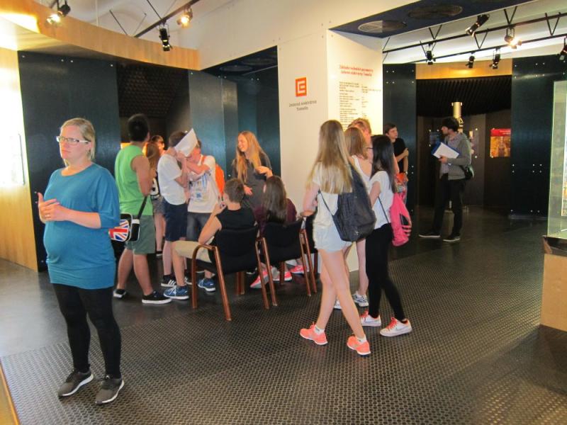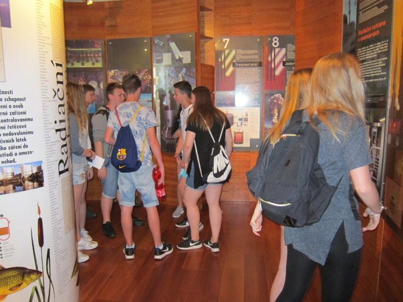 Druhou částí exkurze byla návštěva expozice zaměřená na jadernou energii. Na interaktivních panelech si žáci mohli vyzkoušet jak pracují různé typy strojů. Oblíbeným modelem byl model reaktoru, kde si mohli žáci vyzkoušet přehřát reaktor tak, aby simuloval výbuch. A čemu že jsme byli tak blízko? Samotnému areálu JE. Dětem do 15 let je z bezpečnostních důvodů zakázán vstup za plot elektrárny, tudíž jsme se nemohli dotknout chladících věží a ani navštívit skutečný provoz elektrárny. Ale i tak jsme odjížděli domů s velkým množstvím informací o JE Temelín a vším, co se kolem ní točí. Nabyté poznatky jsme pak využili v pracovních listech při zpáteční cestě autobusem. Někteří z nás se možná se střední školou za plot JE podívají v rámci výuky nebo navštíví JE soukromě. V každém případě se exkurze vydařila a těšíme se na další.