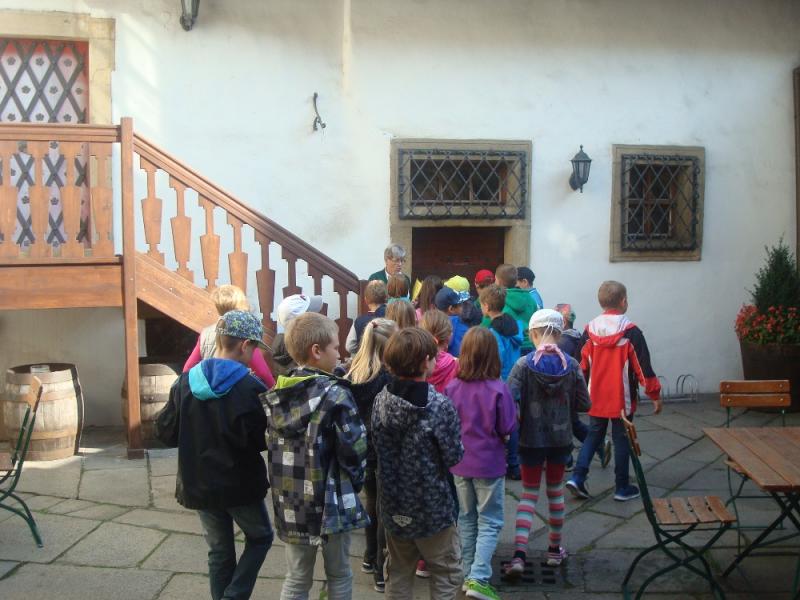 Naše putování za poznáním začalo 27. 9. 2016 v Pivovarském muzeu, kde jsme zjistili, jak se stavělo město ve středověku. Ve skupinách jsme za splněné úkoly získávali odměny - písmenka, ze kterých jsme sestavili název neobvyklého zvířete v plzeňském znaku a to velblouda. Při prohlídce právovárečného domu z 15. století jsme se dozvěděli, kdy byla Plzeň založena, kde byl hrad Plzeň, jak se do znaku dostal velbloud a jaké jsou znaky středověku. Také jsme si postavili z dřevěných dílů středověkou Novou Plzeň. Středověk byl fajn!