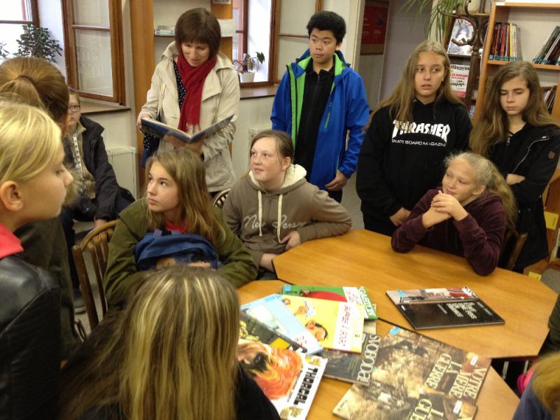 V britské knihovně nás přivítala sama paní vedoucí Mgr. Vlasta Kapsová, člověk naprosto oddaný svému povolání. Tato sice drobná, ale o to více odhodlaná a nadšená knihovnice nás s entusiasmem sobě vlastním provedla posléze po všech výše zmíněných odděleních. Dozvěděli jsme se mnoho zajímavého, počínaje přehledem žánrů a úrovní až po konkrétní tituly či nabídku učebnic a výukových materiálů obrazových i audio. Nejvíce nás samozřejmě zajímalo románské oddělení, kam jsme již zavítali o loňských Vánocích.
