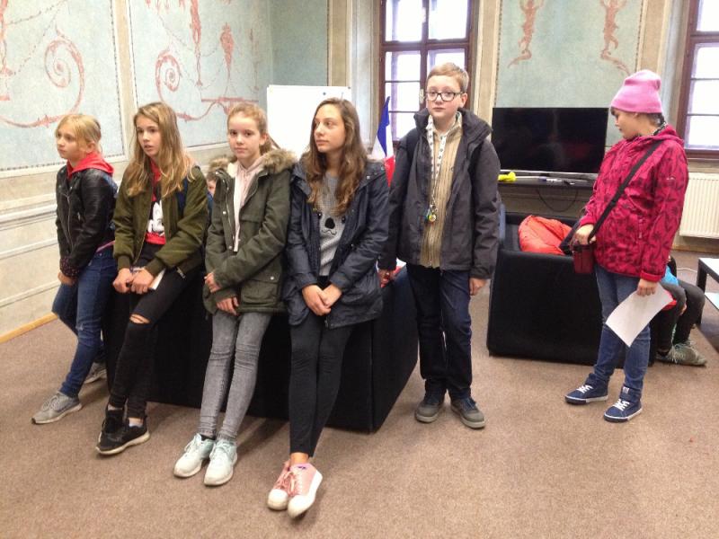 V rámci Evropského dne jazyků navštěvují naši žáci 2. stupně pravidelně na podzim některou z institucí zabývající se propagací cizích jazyků. Nejinak tomu bylo i letos, v pátek 19. října, kdy jsme se s francouzštináři ze 7.B a 7.C vydali do Evropského domu na náměstí Republiky v Plzni.