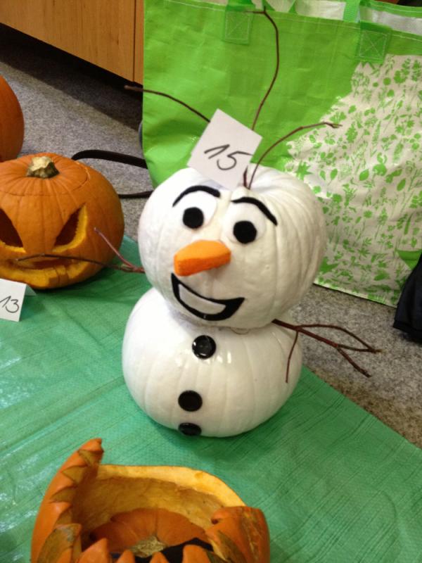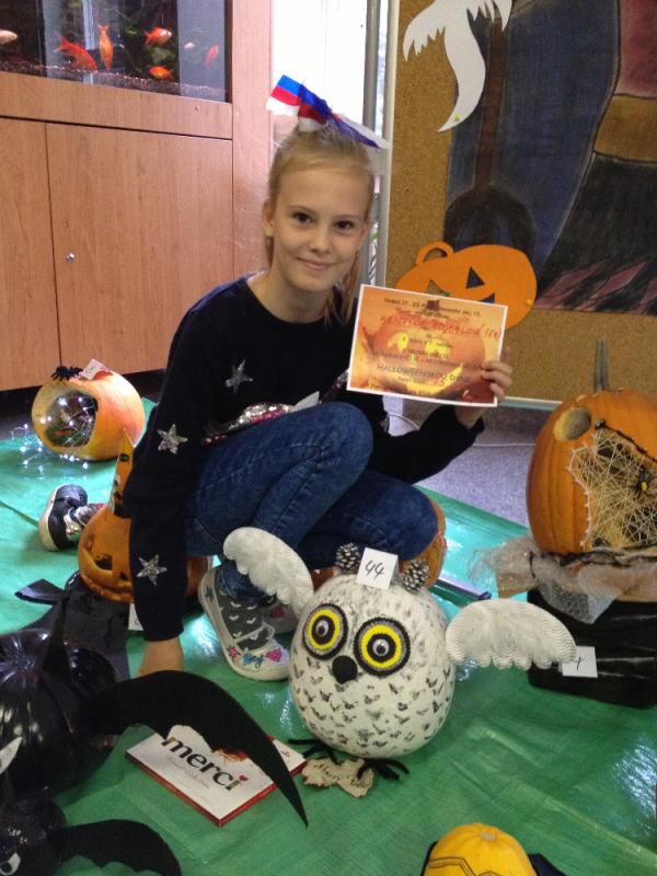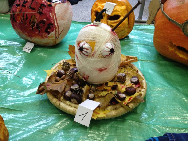 Anonymní hlasování (každá dýně byla prezentována pouze pod číslem) probíhalo po celý týden a bylo ukončeno ve čt. 25/10 odpoledne. Letos jsme poprvé zařadili i hlasování učitelů. A vzhledem ke komentářům některých dospělých, většinou rodičů čekajících odpoledne na své ratolesti ve vestibulu školy, není vyloučeno, že příští rok zařadíme i kategorii „maminko-tatínkovskou.“