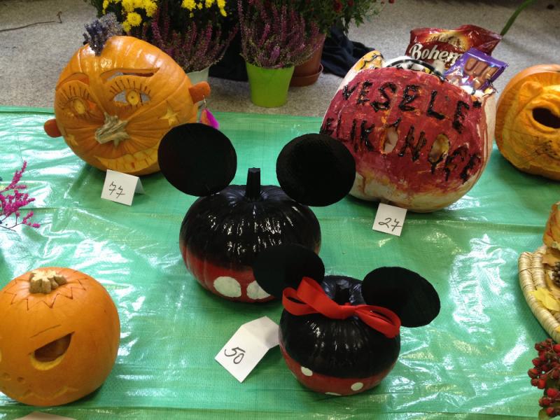 Stejně jako v předchozích 6 ročnících i letos byly dýně krásné a neuvěřitelně nápadité, co kus to skutečný originál. Malé i velké, přírodní i nabarvené, vydlabané, vyřezané, zdobené a doplněné přírodninami, rekvizitami jako byly např. klobouky, čepice, umělé vlasy, bonbóny, sušenky, zápalky, mince, jablka, svítící kostlivci… dýně v podobě netopýrů, labutí v hnízdě, kaktusů, Mickeyho+Minie, zombie, pavouků, požíračů menších dýní, sněhuláků - Olafa z Ledového království a jednoho 3patrového, soviček, vězení, hráčů baseballu atd.