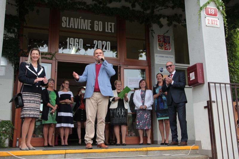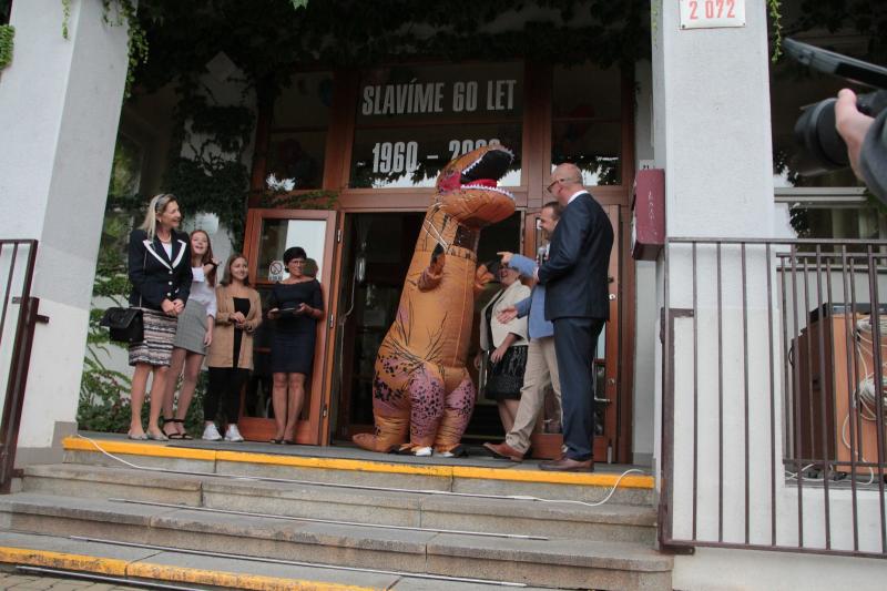 Letos se začátek školního roku 2020/2021 nesl ve slavnostním duchu. Škola totiž slavila 60 let své existence. A navíc žáky čekalo velké překvapení! Zahájení bylo mimořádné nejen tím, že se konalo v roce 60. výročí založení naší školy, ale i představením nového školního maskota – dinosaura, který má se šedesátkou také spojitost. Byl obyvatelem planety Země před více než 60 milióny lety.
