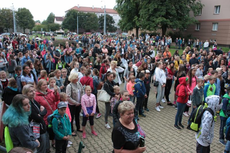 Když byli starší žáci ve svých třídách, nastal čas na přivítání našich nejmenších – nových prvňáčků. Letos čekalo na svou první paní učitelku 95 párů nedočkavých dětských očí. Sluníčko se sice schovávalo za mraky, ale nikomu z přítomných to nevadilo. Paní učitelky a družinové vychovatelky totiž svým úsměvem sluníčko nahradily.