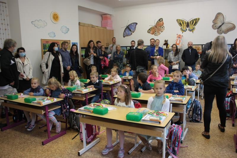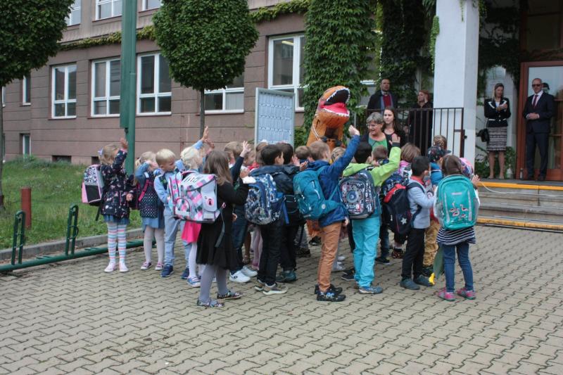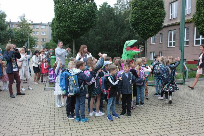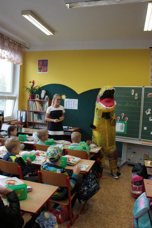 A pak i na prvňáčky čekalo překvapení. Dinosaurus Jednadvacík je přišel pozdravit i se svými mláďaty. Každou skupinu dětí odvedl do jejich první třídy nový kamarád, malý barevný dinosauřík, ze kterého byly přímo nadšené. První den mohli se svými dětmi strávit ve třídě i jejich rodiče, a tak se společně podělit o zážitky ze vstupu do opravdové školy.
