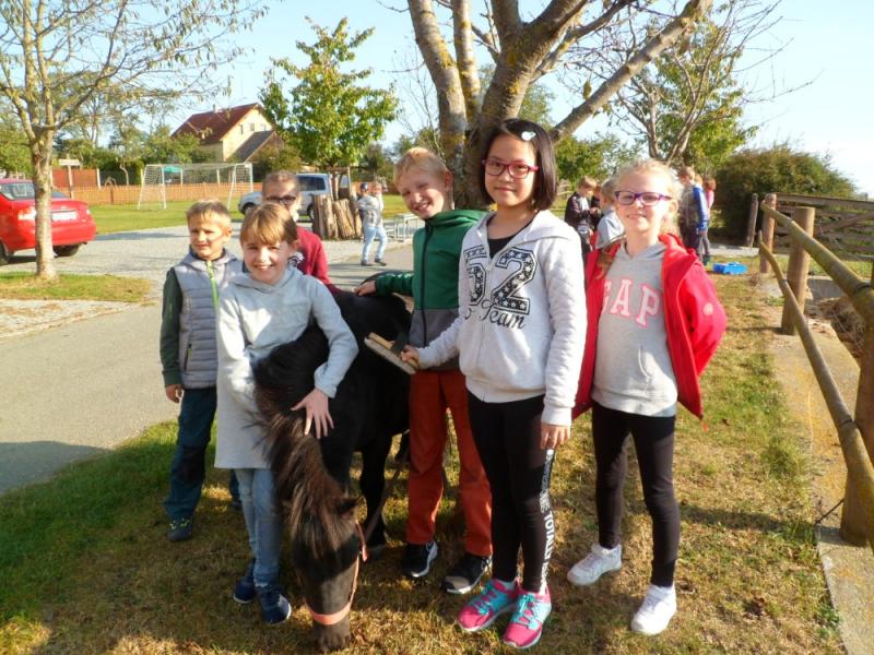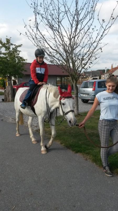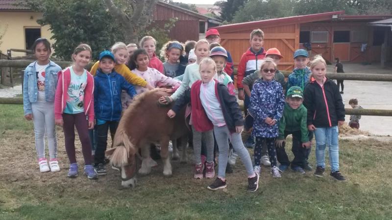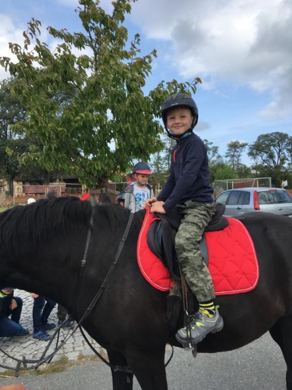 A pak přišlo to, na co se všichni moc těšili – zvířata. Kozy, psi a hlavně koně. Asi největším zážitkem byla právě jízda na jednom z nich. O všech zvířatech se malí farmáři dozvěděli spoustu zajímavostí i zvířecích příběhů. Dnes by se už děti uměly o zvířátka postarat a dokonce je nakrmit vhodnou potravou. A když se k tomu všemu přidá hezké počasí, usměvavé paní lektorky a dobrá svačina, nezbývá než říci: „Prima den“.