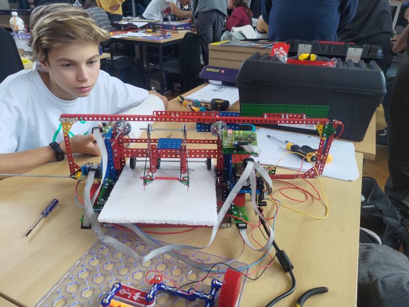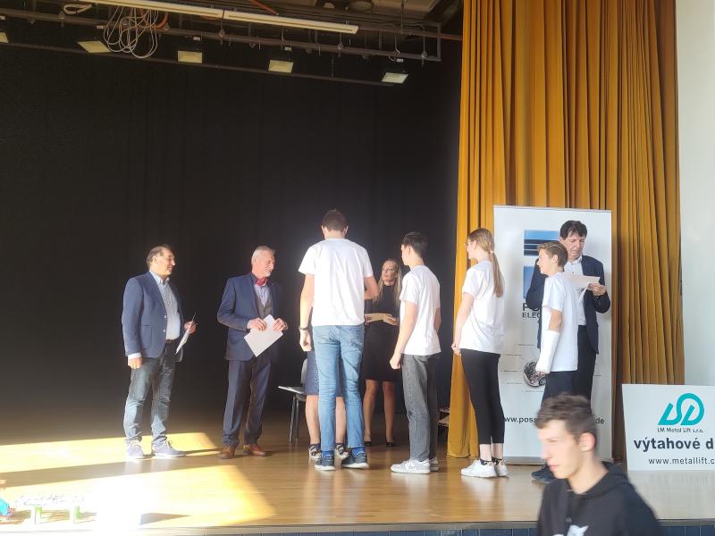 V kategorii středních škol se VOŠ a SPŠE v Plzni zastoupená žáky Lukášem Dernerem a Martinem Pihrtem spojila s 21. ZŠ zastoupenou žákem Danielem Brožem a 4. ZŠ zastoupená žákyní Marianou Pihrtovou. Tento tým se umístil na 3. místě v kategorii středních škol. Cílem soutěže bylo v co nejkratším čase sestrojit funkční řezačku polystyrenu. Řezačku týmy sestrojili pomocí stavebnic Merkur, Boffin a desky Arduino UNO.