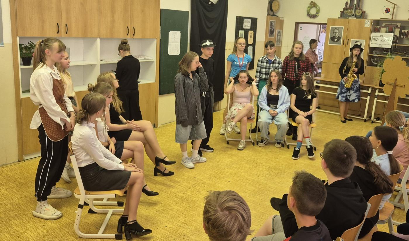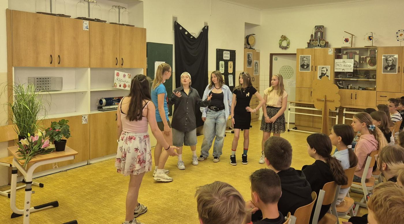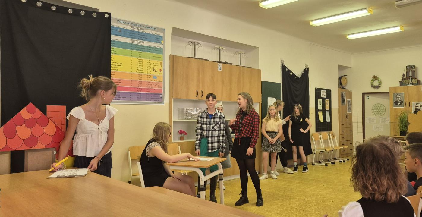 Náš školní divadelní soubor, složený z žáků a žaček od 6. do 9. tříd, letos uvedl divadelní hru Bezejména. Premiéra se odehrála ve středu 14. května a hned 15. května proběhlo představení pro žáky druhého stupně. Vzhledem k velkému úspěchu jsme hru reprízovali 11. června pro všechny žáky 5. tříd.