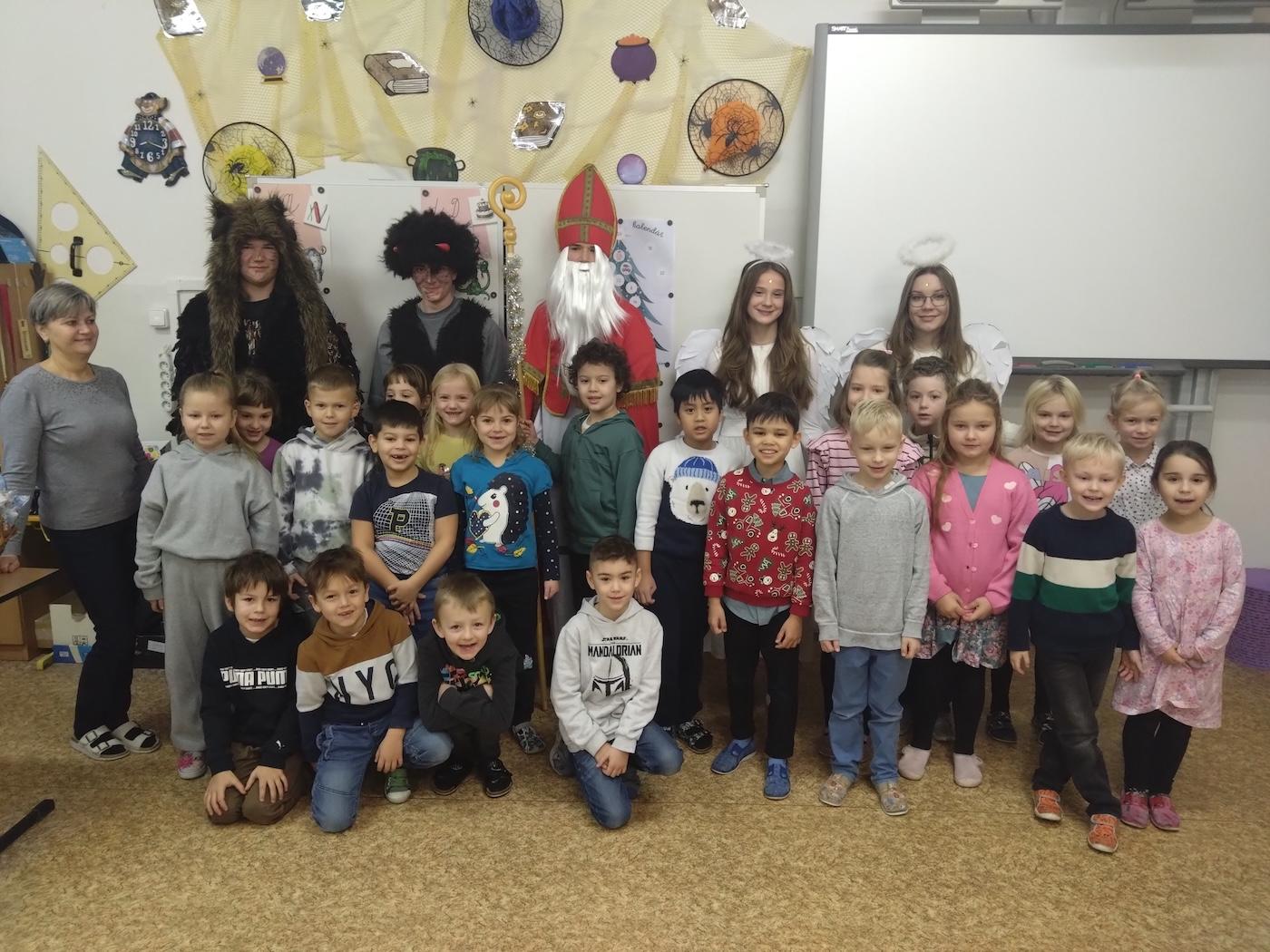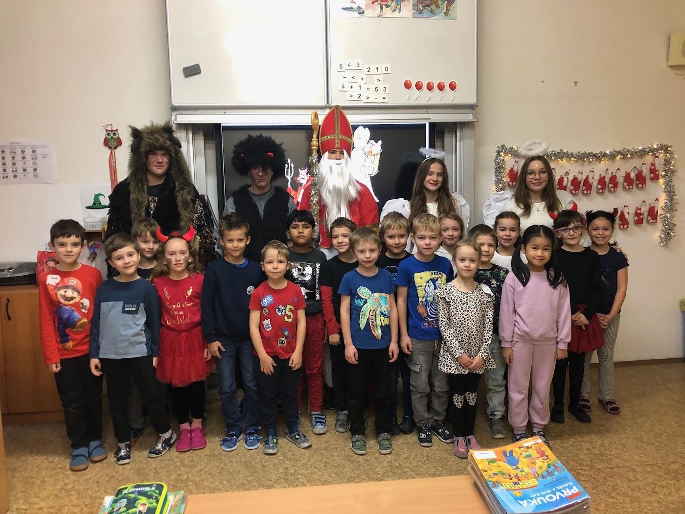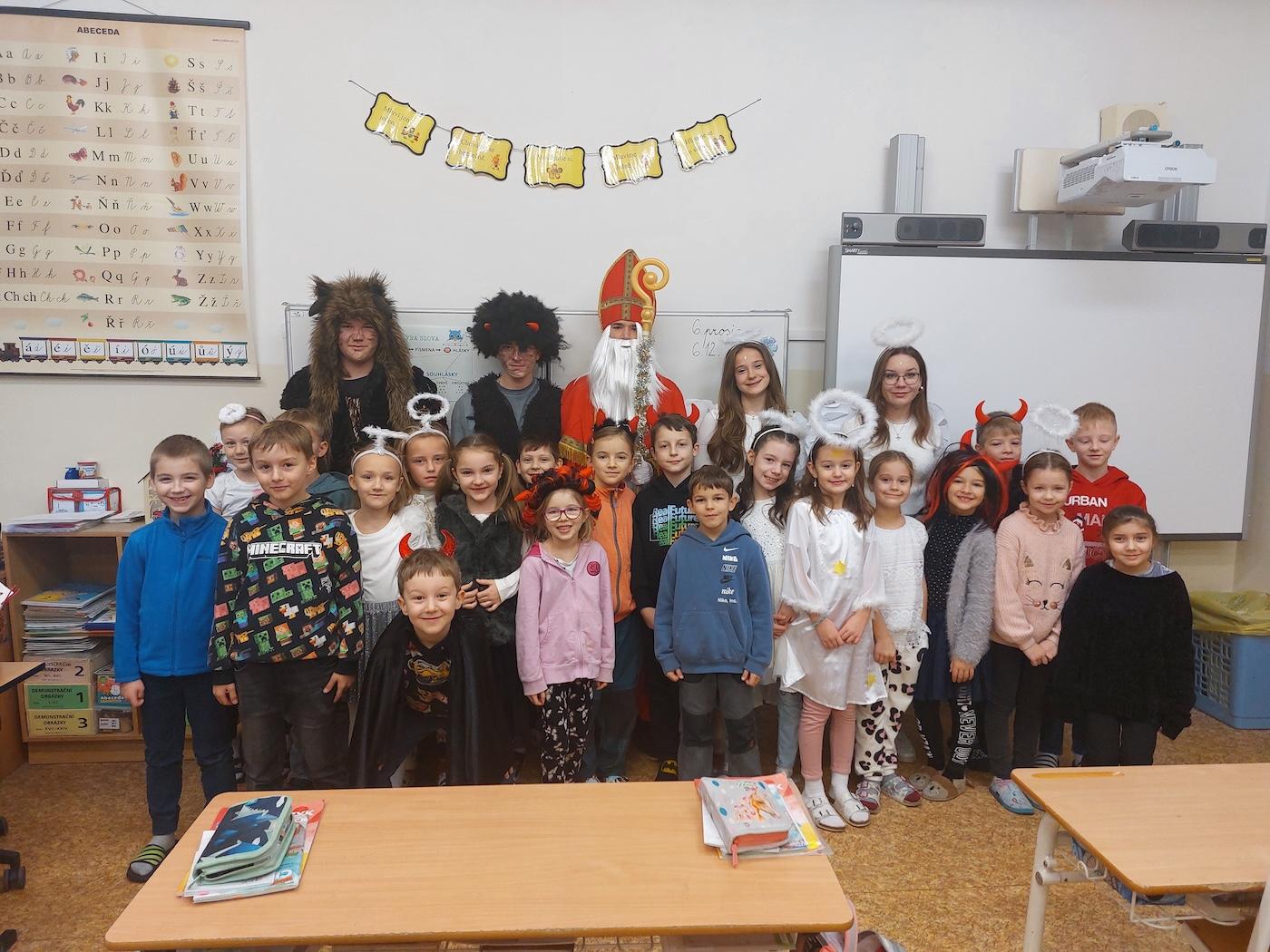 V pátek 6. 12. proběhla v 1. a 2. třídách naší školy neobyčejná návštěva – čerti, Mikuláš a andělé přišli potěšit malé školáky.