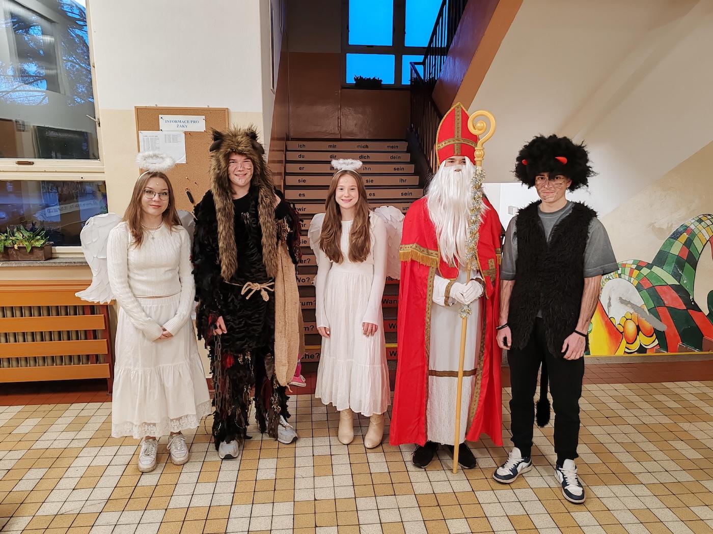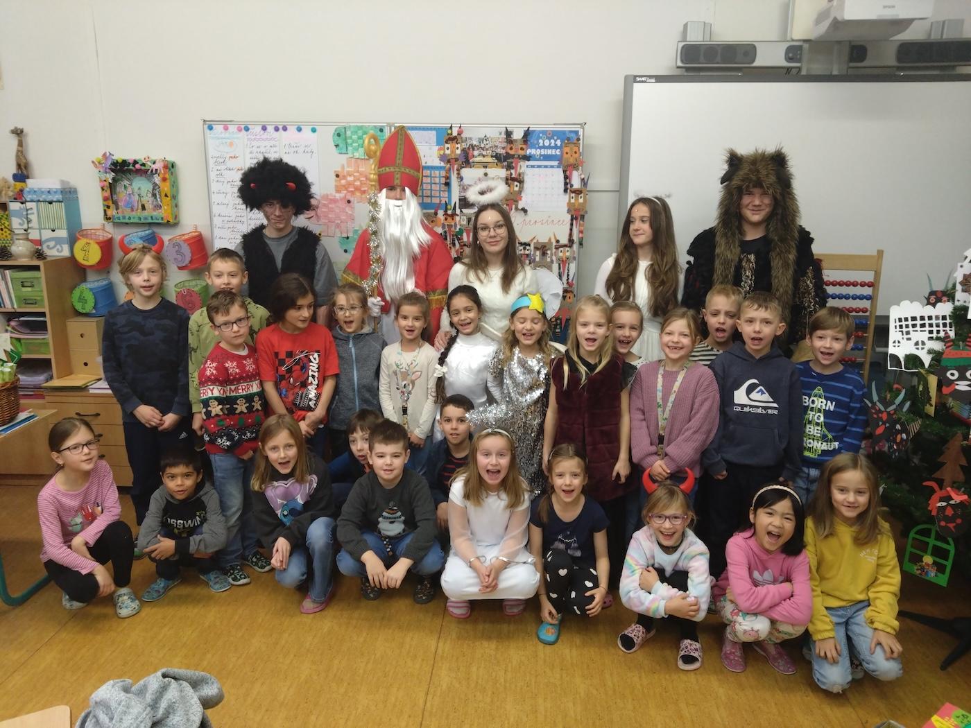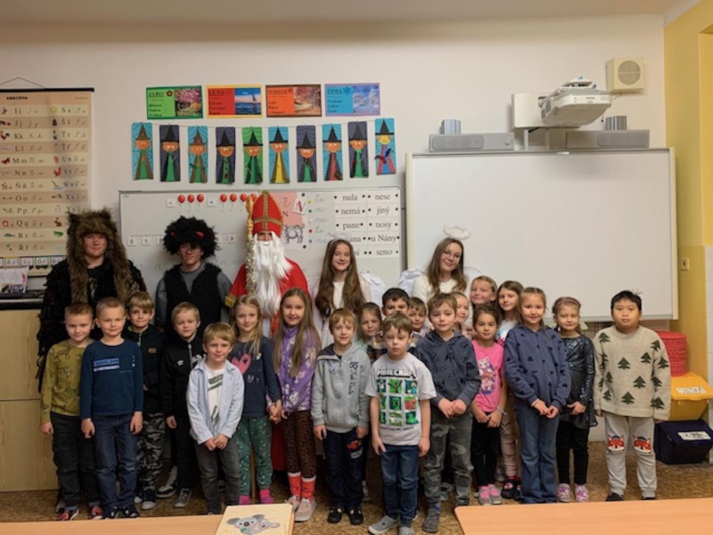 V pátek 6. 12. proběhla v 1. a 2. třídách naší školy neobyčejná návštěva – čerti, Mikuláš a andělé přišli potěšit malé školáky.