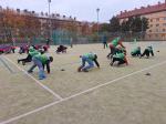Trenéři Rugby clubu Plzeň pro žáky prvního stupně připravili několik stanovišť, kde si mohli vyzkoušet základní aspekty tohoto sportu. Házení s šišatým míčem děti bavilo, ale jednoznačně nejoblíbenější bylo stanoviště s ukázkou skládky (strhnutí protihráče na zem).
