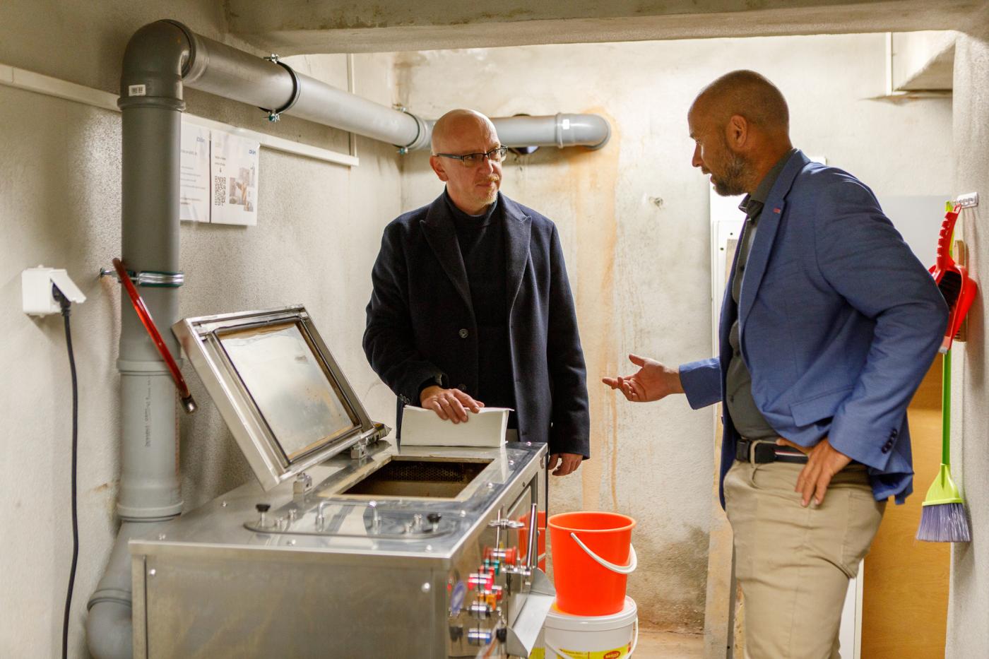 Ve středu 24. 5. 2025 se třída 9.B zúčastnila exkurze přímo ve školní kuchyni, kde se žáci seznámili s moderním způsobem zpracování biologického odpadu – elektrickým kompostérem.