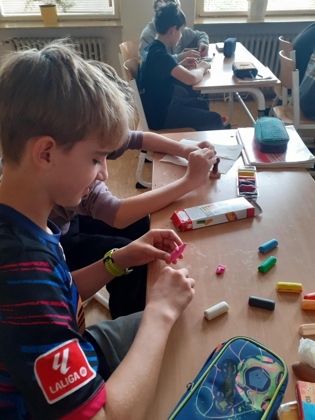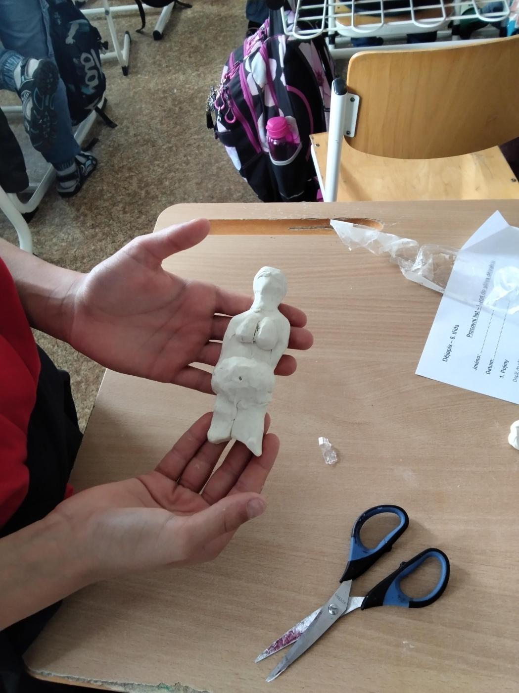 Celou hodinu žáky při práci sledovala kopie Věstonické venuše jako inspirace. Výtvory nyní zdobí kmenové třídy 6. A a 6. C. Díky všem žákům za jejich nadšení a tvořivý přístup k zadanému úkolu!