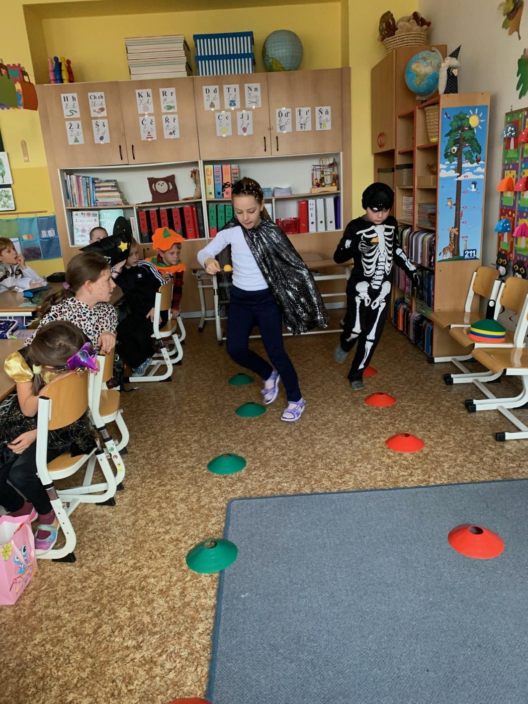 Strašidla ve 2. A totiž slavila Halloween. Skupinky duchů, čarodějnic, upírů a dalších bytostí soutěžily a plnily nejrůznější úkoly, hrály si a povídaly. A sbíraly žetonky pro své týmy. Ty se snažily vytvořit dokonalou mumii, vyřešit bezchybně pracovní listy, zvítězit v halloweenské únikové hře či být nejrychlejší v soutěžích.
