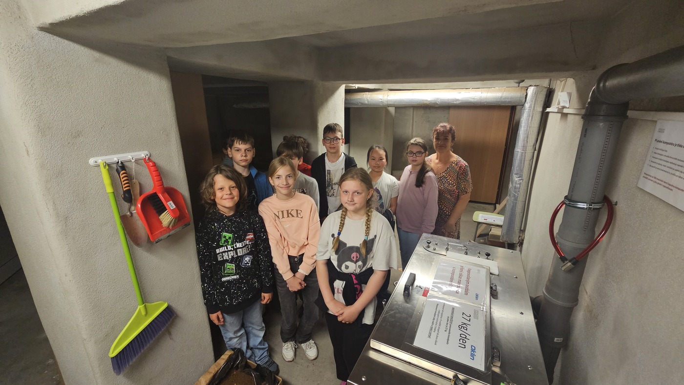 Třída 4. ročníku s paní učitelkou Mgr. Marcelou Varmužovou navštívila nový kompostér, který zpracovává zbytky jídla ze školní jídelny. Děti se dozvěděly, jaký význam má kompostování pro školu i přírodu – a hlavně pochopily, kam mizí to, co nesnědí.