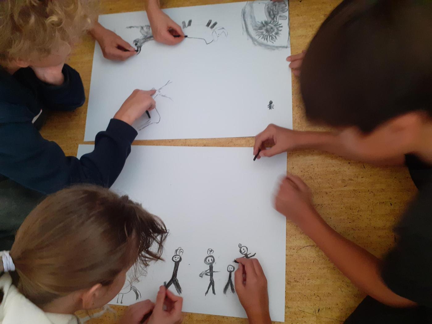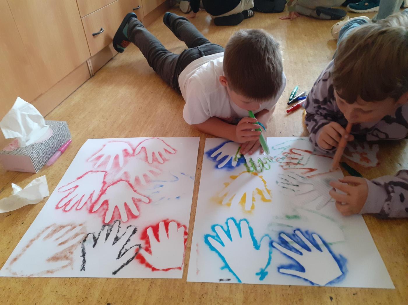 Z modelíny vytvářeli sošky pravěkých venuší, uhlem kreslili zvířata lovená pravěkými lidmi a pomocí foukacích fixů zdobili siluety svých rukou, podobně jako to dělali pravěcí umělci na stěny jeskyní.