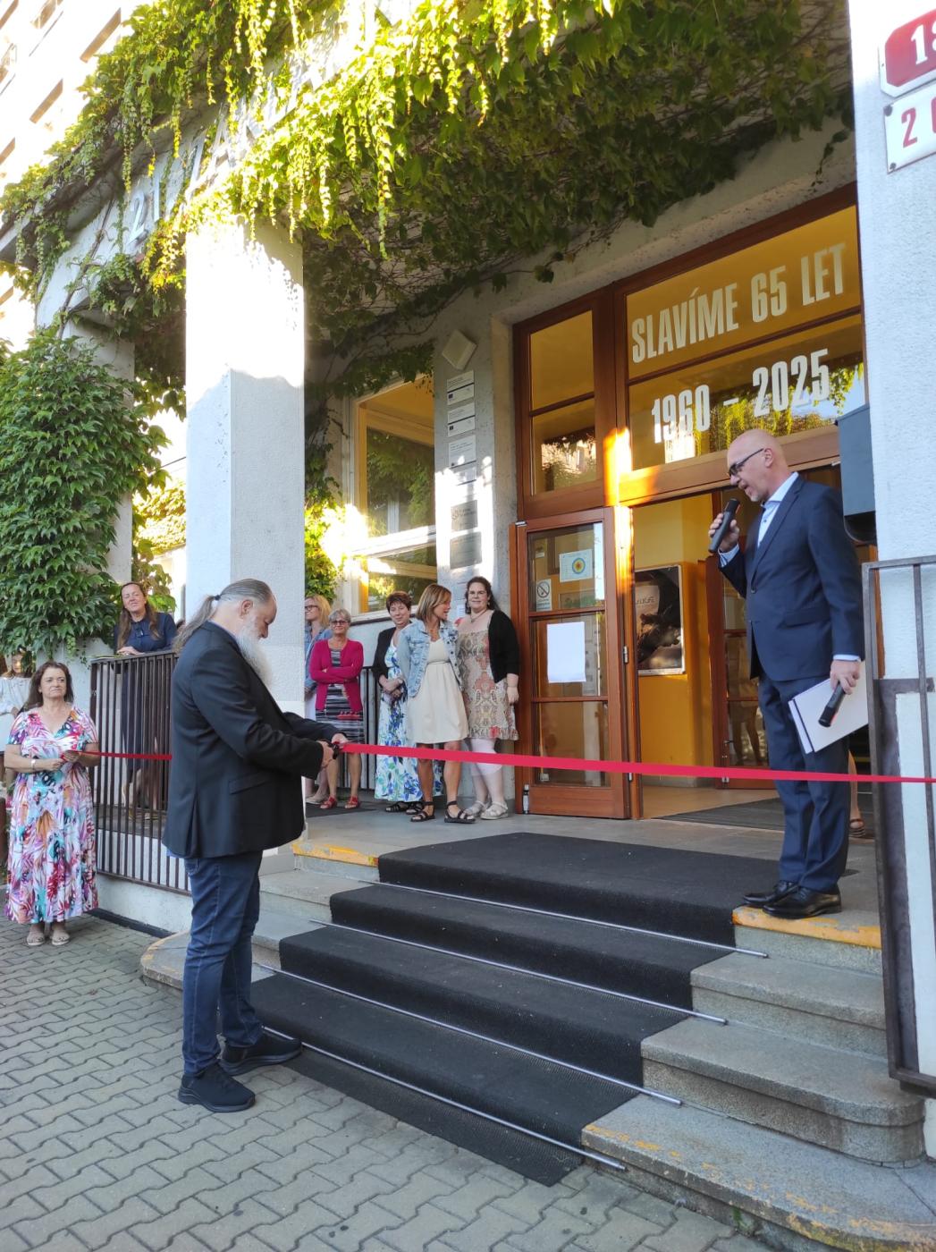 Poté pan senátor slavnostně přestřihl pásku a žáci mohli znovu – již po pětašedesáté – vstoupit do školy.